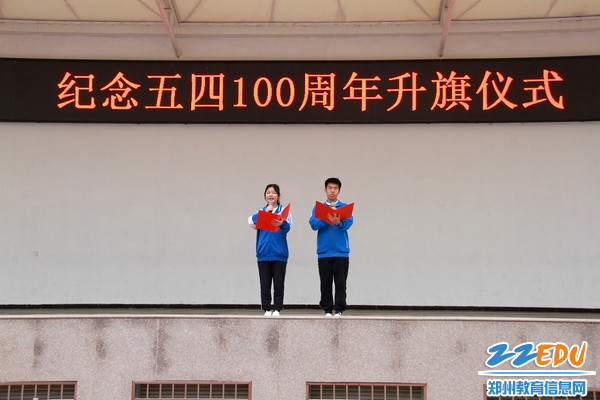 仪式上,高二(9)班团支书张洪发代表校团委向青年学生发出倡议,号召同学们继承“五四”传统,弘扬“五四”精神,坚定信念,严于律己,做爱国进步、奋发有为的中学生。