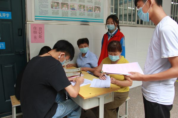 8月16日,录取的高一新生有序入校。在学校大门口,教师、门卫人员、志愿服务者认真为入校学生测量体温,提醒做好卫生防护,组织学生排队入校。然后由教师、志愿服务者引导学生到各办理点依次办理各环节手续。