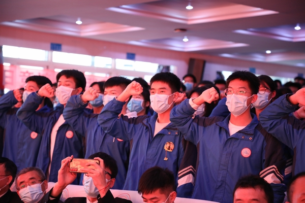 郑州市第三十一高级中学教师赵英波代表全体高三教师,再次向高三学子们谆谆教诲,深情勉励。勉励学生们牢记初心,牢记自己的梦想,不退缩,不放弃,直面困难,经受磨练,“甘将心血化时雨,润出桃花一片红”。陏后,全体高三教师登台宣誓,郑重承诺:忠于职守,不放弃一个学生,用汗水浇灌希望,用智慧哺育理想,为学生们保驾护航,让学子们顺利走向人生的新阶段!