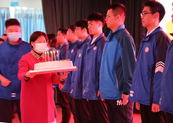 校长贾惠芬等领导为各班学生送上十八岁生日蛋糕