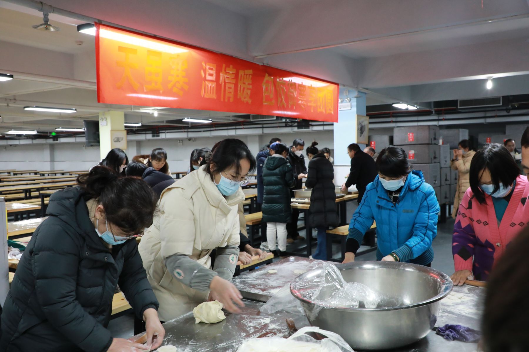 12月22日,冬至佳节。上午10:00,郑州市第三十一高级中学工会热情地邀请老师们:“请大家到学校食堂包饺子欢乐迎冬至啦!让我们携手并肩,包饺御寒享团圆!”结束完工作的老师们纷纷响应,四方携手,笑面齐至,一起包饺子,欢乐共享,聚起校园一片温暖天地。