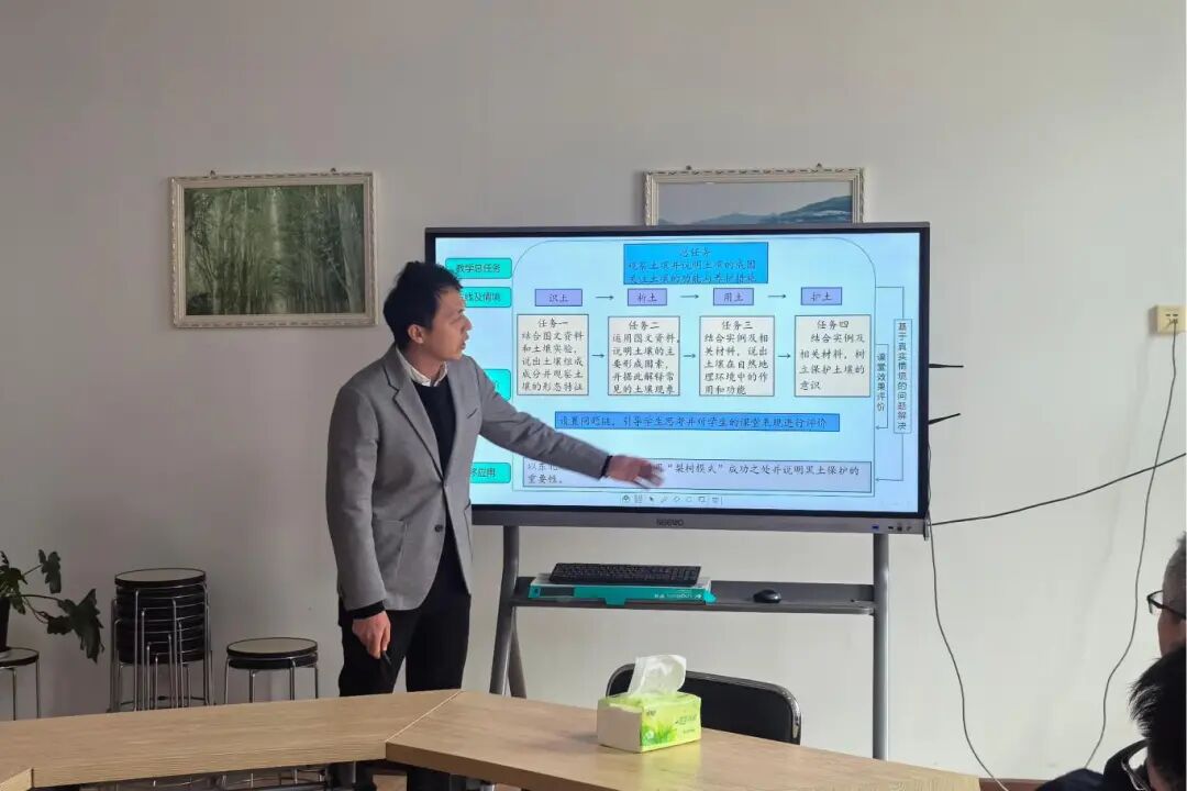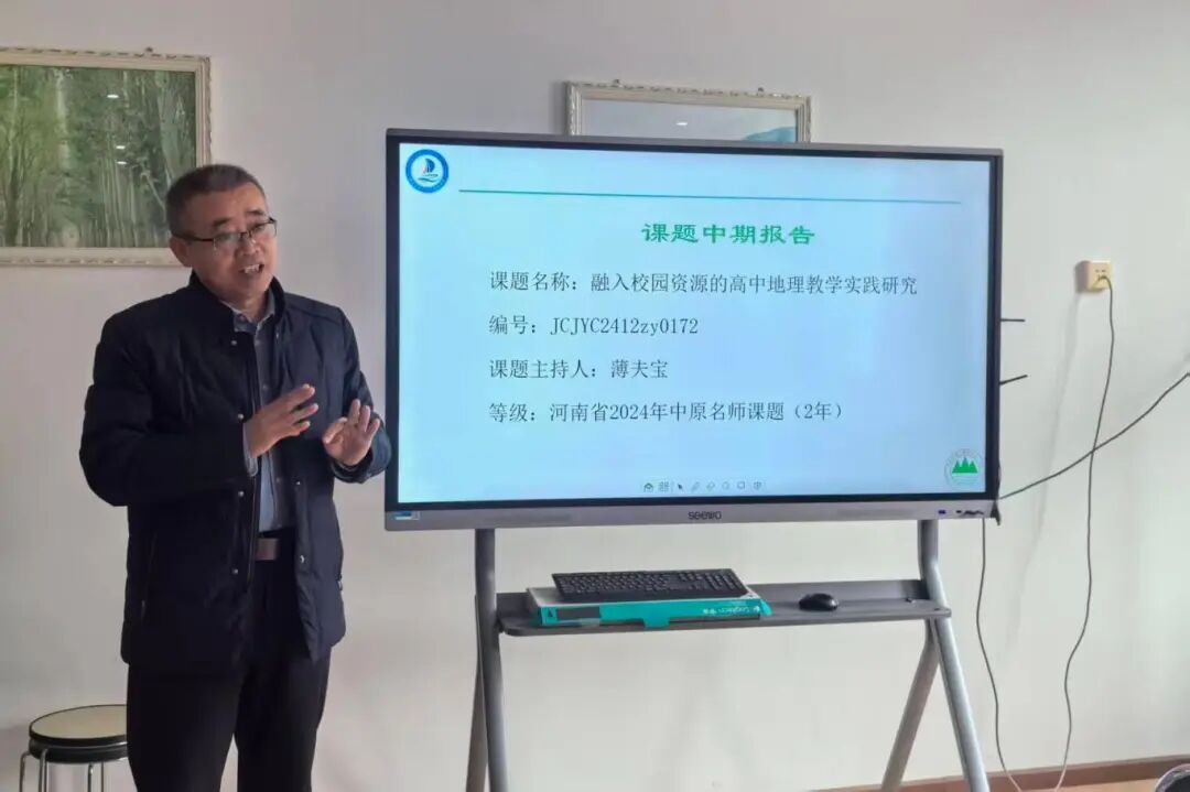 课题主持人薄夫宝老师就课题《融入校园资源的高中地理教学实践研究》的进展情况进行了全面、系统的阐述,从研究背景与目标、已开展的研究工作、取得的阶段性成果、研究过程中的主要创新点与困惑、下一阶段研究计划等方面进行了详细汇报。既展示了课题组扎实的研究过程与丰硕的初期成果,也坦诚地提出了研究中遇到的挑战与思考,体现了严谨求实的科研态度。