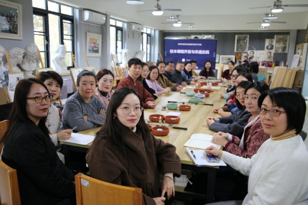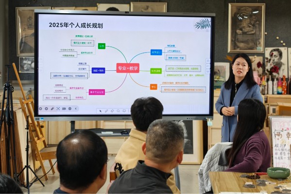 工作室主持人王金凤以“专业 + 教学”双提升为核心,总结回顾工作室工作,进行“校本课程开发与非遗实践”工作规划,鼓励成员“以非遗为根、以教学为脉、以成长为果”,积极探索在美育课堂中开展非遗宣传、学习、传承工作。