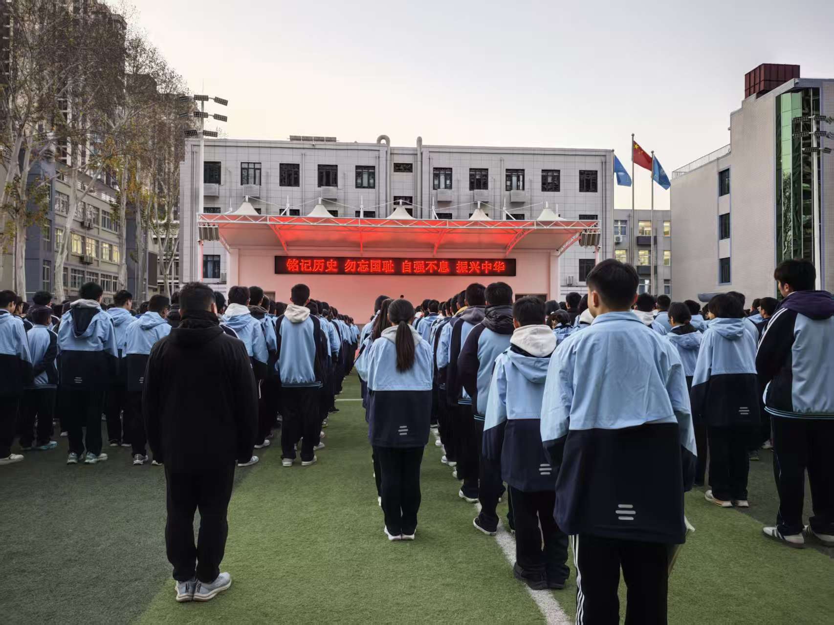 为铭记历史教训,弘扬爱国精神,在第12个国家公祭日来临之际,郑州市第三十一高级中学举行国家公祭日主题活动,师生齐聚操场,共同缅怀先烈,寄托哀思。