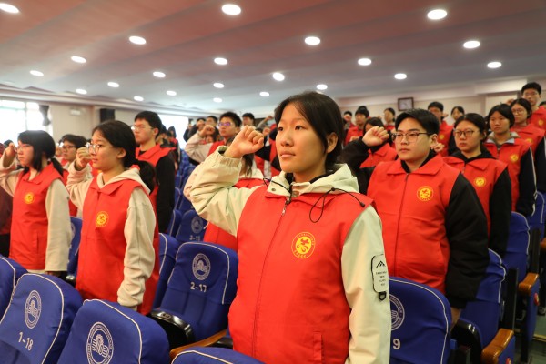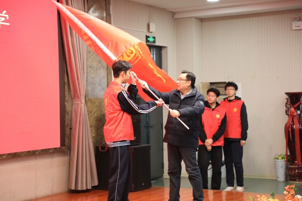 曾涛为志愿服务队授旗,激励同学们奉献担当,在志愿服务的道路上勇毅前行。