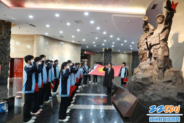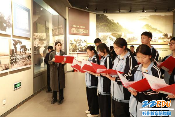 在中原英烈纪念馆内,全体学生高举右拳,重温入团誓词:“我志愿加入中国共产主义青年团,坚决拥护中国共产党的领导,遵守团的章程,……”铿锵有力的誓言表达学子继承先烈遗志、矢志报效祖国的坚定信念与青春担当。在学校历史教师苏义权的讲解下,同学们认真观看了纪念馆内珍贵的历史图片和革命文物,重温那段烽火连天的峥嵘岁月,深切感悟革命先辈不畏牺牲、百折不挠的英雄气概。
