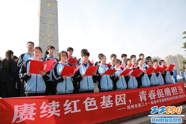 郑州市第三十一高级中学政教处主任张松峰以“赓续红色基因 青春挺膺担当”为题讲话,勉励同学们继承红色基因,传承革命精神,铭记初心,锤炼品格,勇担使命,奋勇争先,努力成为担当中华民族伟大复兴大任的时代新人。